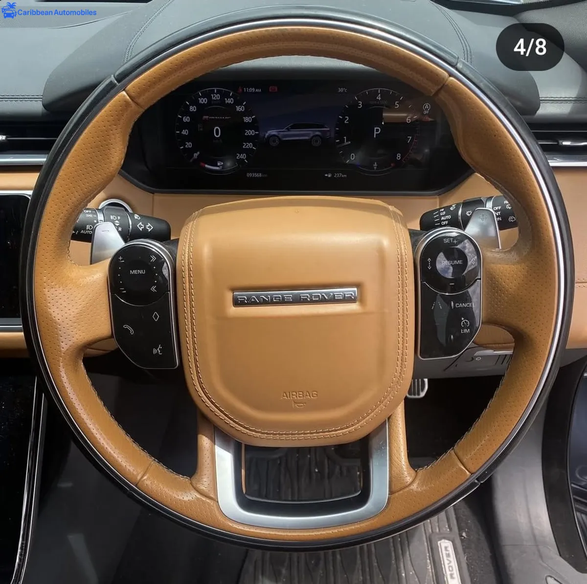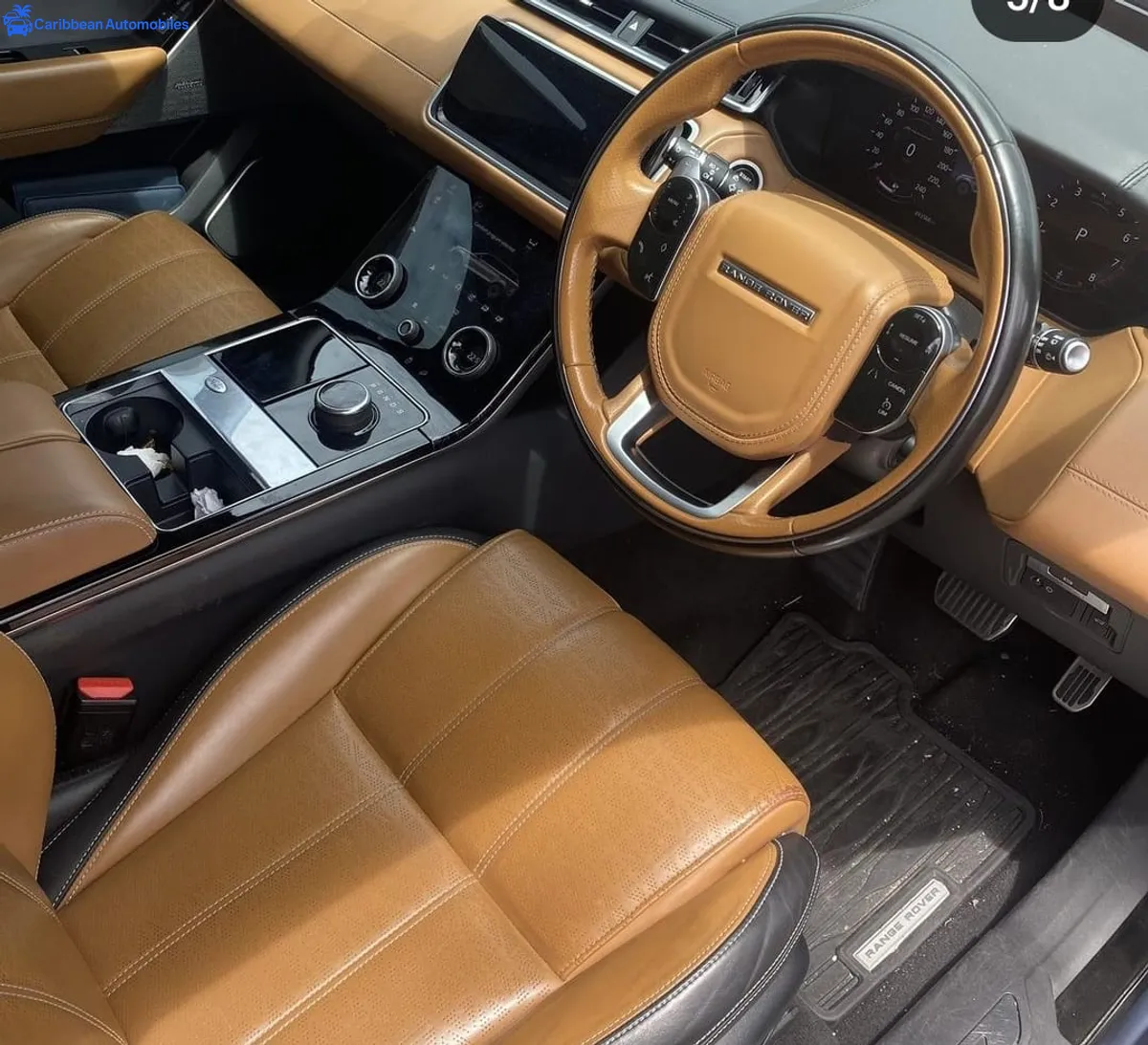 A beautiful, fully loaded, luxury SUV with a moon roof and tan, leather interior.