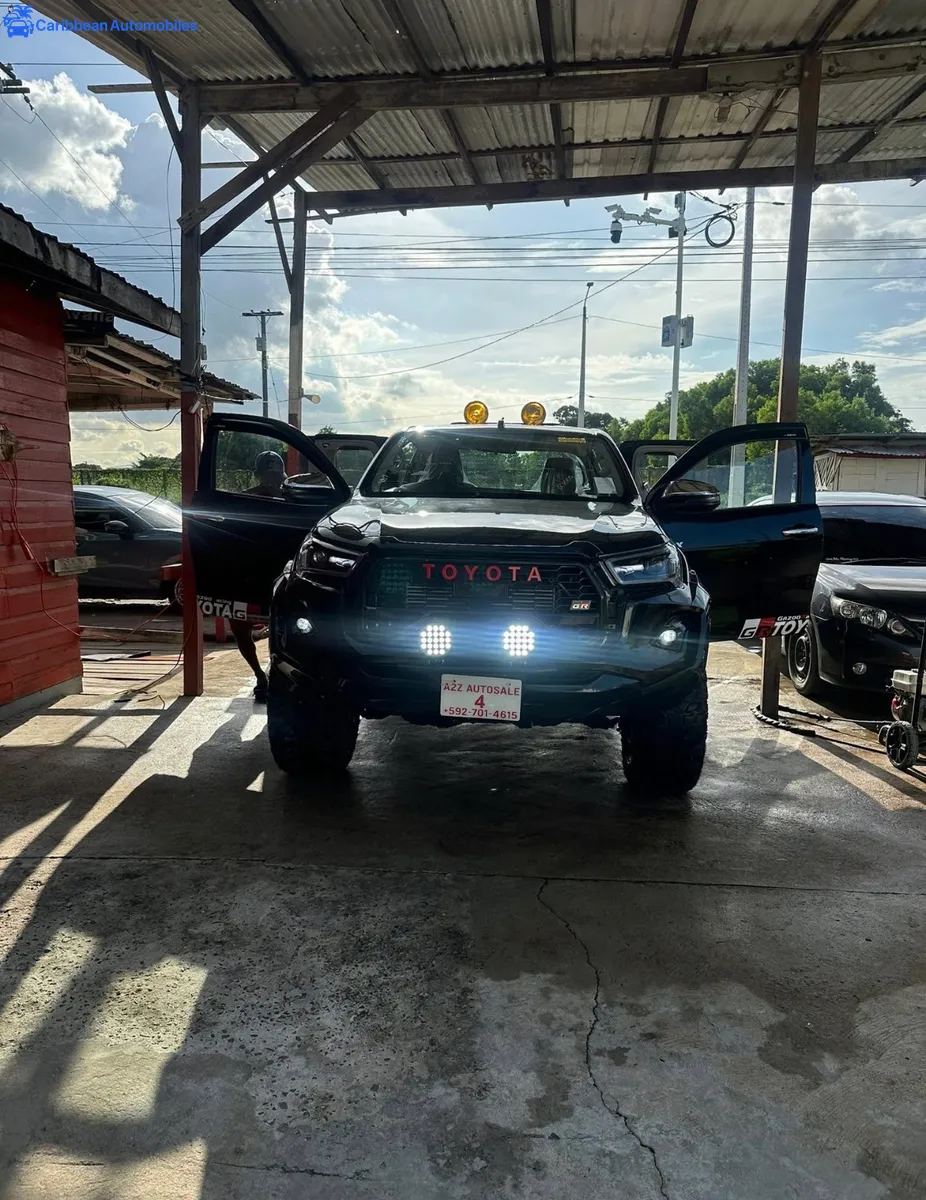 2018 Toyota Hilux Revo Gr Sport Facelift Eco PWR IMT mode. Manual Transmission 2800CC Turbocharged 4Wheel drive ✅Black ✅Diesel Engine 2755 cc. (177 Horsepower) ✅MT/6sp gear. Eco, PWR,IMT mode. ✅4 Wheel Drive 4WD (Diff Lock) ✅ 56,989 km miles. ✅CD player, DVD, Bluetoothreverse camera. ✅ AIR BAG 2 positions ✅ABS,EBD,BA Brake System ✅Tools+Strong mother+Full spare tire. ✅Facelift to Gr Sport ✅New 20 Rims and Tires ✅Roll bar ✅2.5 inch lifted and complete kit. ✅GR LEATHER SEATS SEATS ✅FLOOR MATE GR SPORT ✅GR STRICKER METAL BODY ✅STKID PLATE ✅SUNWISER GR SPORT ✅ROOF RACK GR SPORT ✅SIDE MOLDING ✅HANDLE COVER LIGHT COVER GR SPORT ✅BONNET SCOOP Price: $7,300,000 FREE REGISTRATION FREE FITNESS FREE NUMBER PLATES FREE BUFF AND POLISH FREE FIRST SERVICE FREE TINTING 😎 Call or WhatsApp +592 701 4615/  639 5394